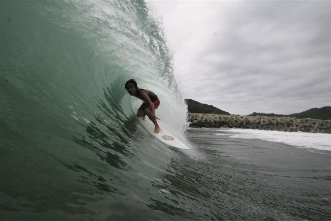 これは四国の河口で、Kirbyさんに撮ってもらった写真。この時は空いていて、波も余ってた。こんな感じのバレルが沢山あって、思いで深い日。