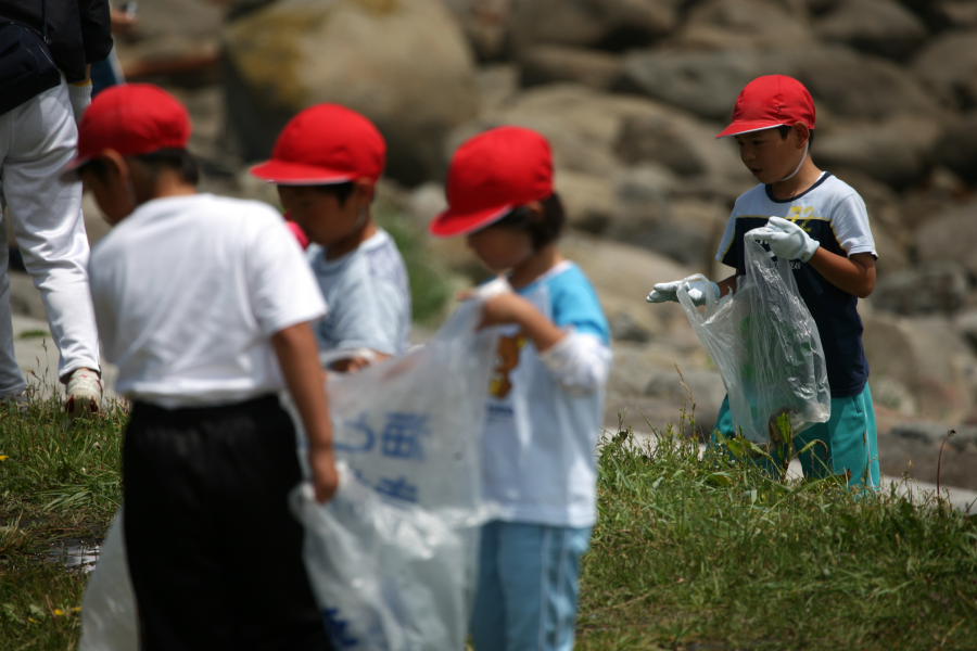 翌朝、海岸では小学生達が楽しそうにゴミ拾いをしていました。今の時代、大人達がゴミを捨てて、子供達が拾う。悲しくなりますね。