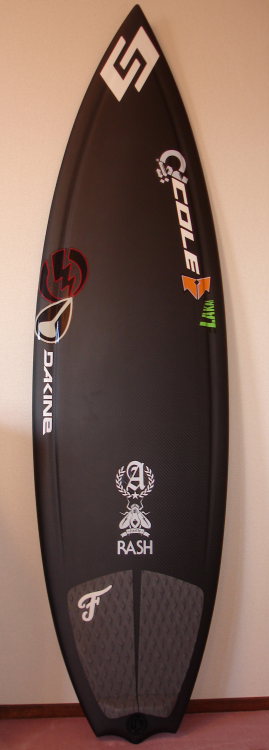 普段鎌倉で使う板のサイズは5’9×173/4×2。スワローが好き。