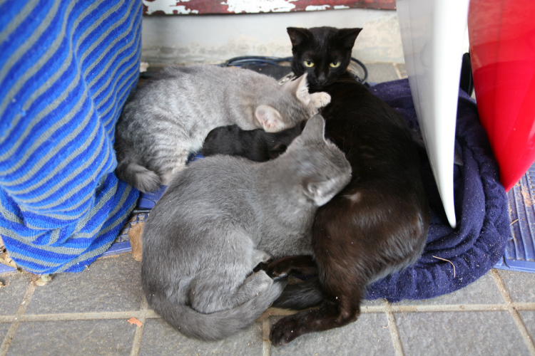 Ghにいる子猫達。海に行く時に必ずあいさつをして来てくれる。