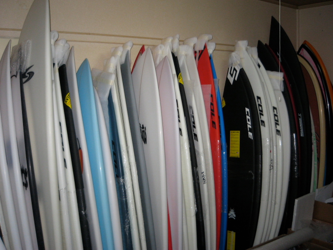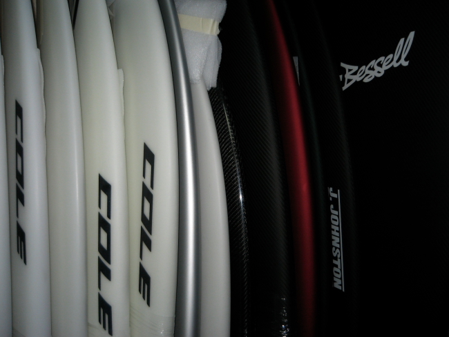 到着すると、CAやオーストラリアから届いた板が150本程あり、事務所は板でパンパンな状態。中でもCole AvisoFFはその存在感ありましたね。6'0のAvisoが結構届いていたので、初めの方にオーダーされた方から順に届けられる事でしょう。楽しみに待っていて下さいね!