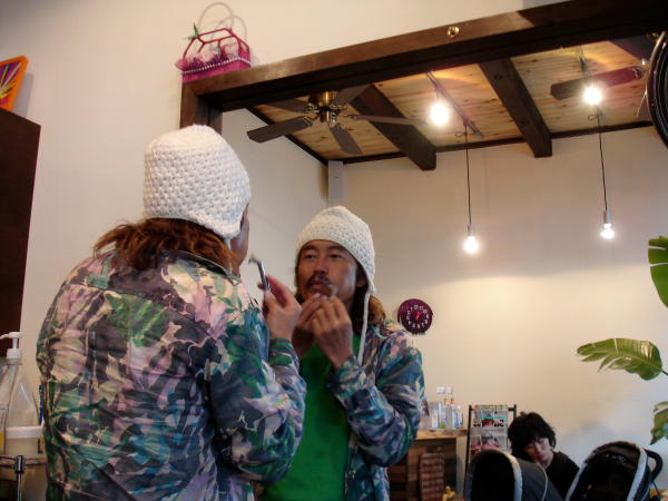 nakiさんとヘアカット。代々木にあるアップルへ。鎌倉和楽家具が内装をやらせて頂いた友達のヘアサロンへ。何故かひげを剃りはじめたnakiさん。取材でもあるのかな?