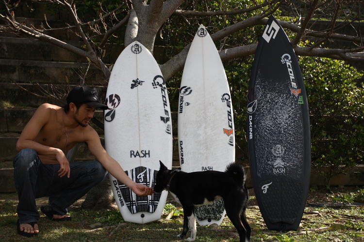 このような波のコンディションでは思いっきりレールを入れてターンしたりカットバックしたり、時にはストールしてタイミングを計ったりと、色々なシチュエーションが考えられる。波に力があるので板にボリュームを持たせる必要はない。ただ走り出したい時に(加速したい時)踏み込んで板が走り出さなければならない。そのような板を作るには、ライダーからのフィートバック、そしてシェイパー自身のシェープ、波乗りの経験がものを言う。