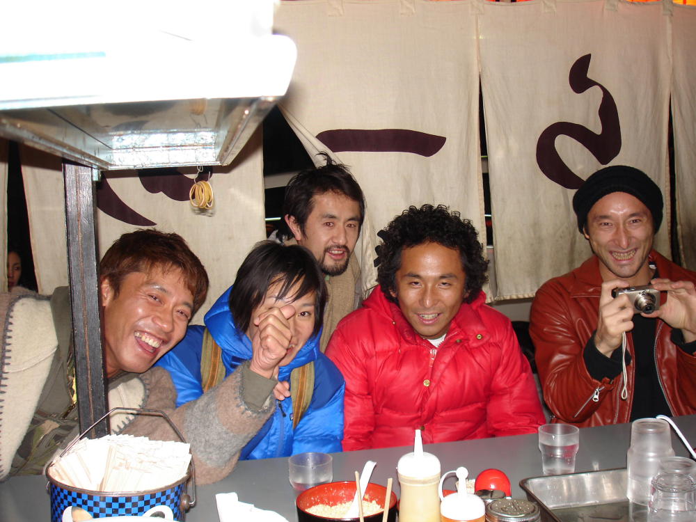 わざわざ鎌倉、藤沢から駆けつけてくれた渡辺夫妻。そしてkazさん。まにあ〜なochiさん。いつもありがとうございます。寒い中、べろべろで食べるとんこつら〜めん、最高でした。