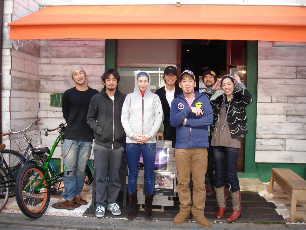 そして右がプロサーファーの脇祐二君。彼はエレク、LAKAI,RAPTORのプロライダーです。後、今日は田嶋テッペイ君も来てくれました。てっぺいは明後日からブラジル、ゆうじは先週baliから帰ってきたそうです。
