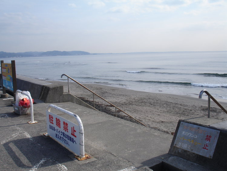 家から七里を抜けて茅ヶ崎へ。サーファーが2人程。たま〜に膝が割れる程度。ロングなら気持ち良さそう。波乗りしてたのは自分のスポンサーの方でした(笑)。