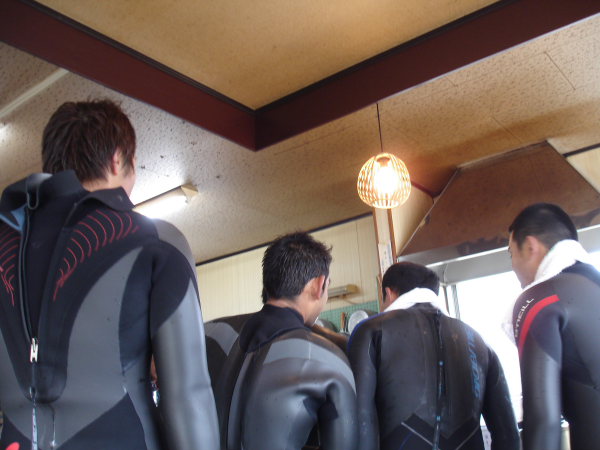 1Rめは、波はセットで腰腹。2Rめは胸くらいかな。お昼ご飯に定食やに入ったら、ウェットを着たままのサーファーが、ご飯を注文しに。外で食べるそうです(笑)。初めて見ましたこんな光景。