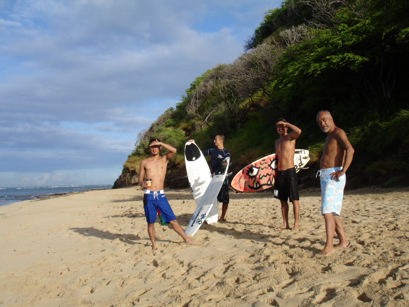 これは去年、ダイアモンドヘッドかな。早朝波乗りに出かけたとき。うちの親父も、nakiさん、tomo君もいるね。