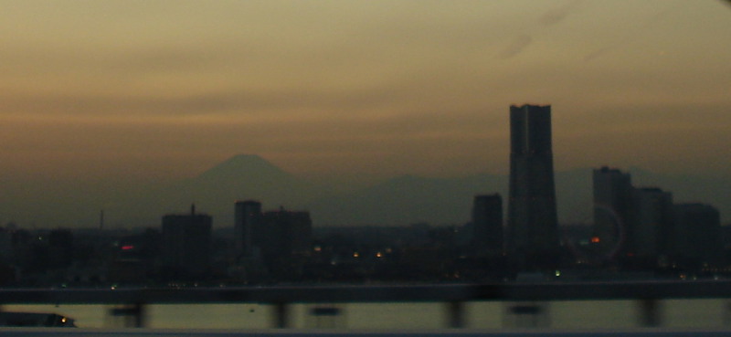 通いなれたこの道も、後1回。今日も夕日が綺麗だった。富士山も見れるんですね。