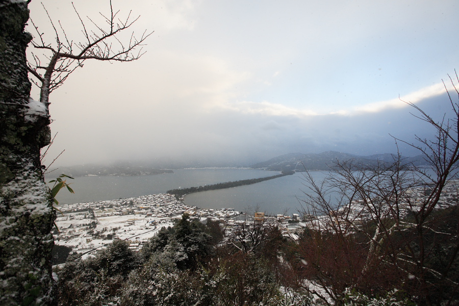 観光しに行った、天橋立。雪化粧。