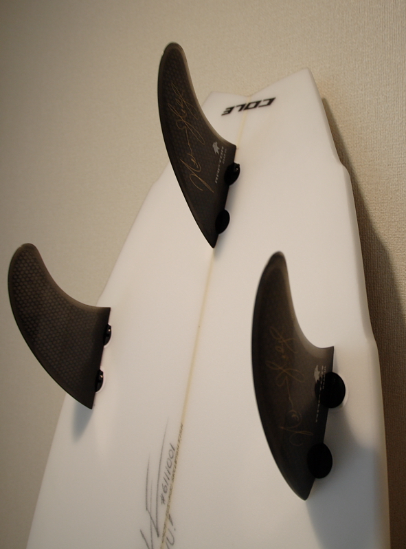 感じた事はとてもパドルが早く、安定していて波に乗りやすい。初めてcoleのSKELTON FISHに乗った人は、自分のパドルの早さに驚く事だろう。そしてノーズエリアに厚さを残した事、ロッカー、コンケーブのバランスの良さから、テイクオフの早さは群を抜いている。そしてレール。詳しくはここを見て頂きたい。